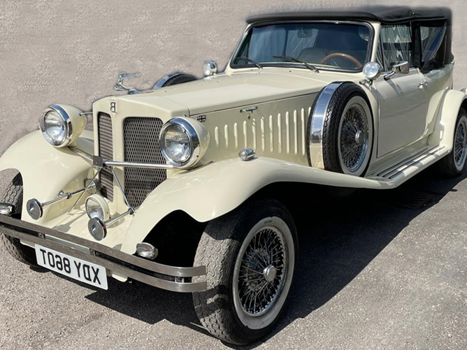 This gorgeous 1930’s style open-top tourer, would make any wedding that little bit more special. This classic style car, finished in deep cream, with a chocolate interior really does look the part and will be there to compliment your photographs. Then with the hood down, everybody can see the new Bride & Groom as they smoothly make their way to the reception.